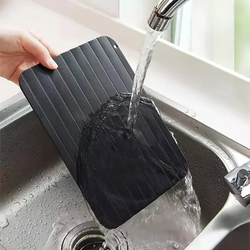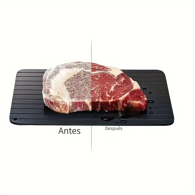 ¿Se te olvidó sacar la carne del congelador? Con esta tabla descongeladora, eso ya no es problema. Sin electricidad, sin microondas, sin estrés: descongela de forma natural y segura en menos tiempo.